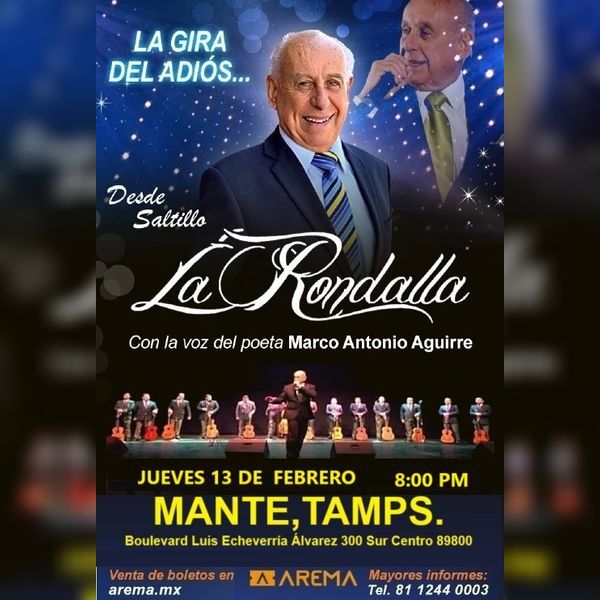 ¡Desde Saltillo, la Rondalla! Prometimos volver con los Grandes Éxitos de siempre en la gira del adiós ! Wendolyne, Historia de amor, Corazón de Roca y muchos más! te esperamos en esta única función Información: 8112440003