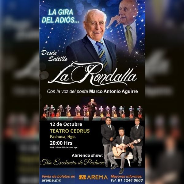 Todos los éxitos con la Rondalla y la voz del poeta Marco Antonjo Aguirre, en su gira del adios después de 55 años de poesía y romance..