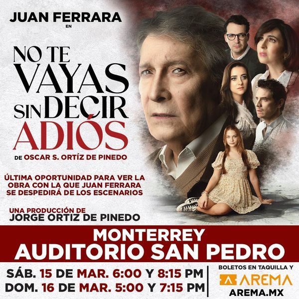 Sinopsis o información del evento: No te vayas sin decir adiós