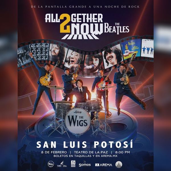 “The Wigs está de regreso en San Luis Potosí! Prepárate para disfrutar como nunca de los grandes éxitos que dieron vida vida a las películas de la banda más grande de todos los tiempos: THE BEATLES! Como nunca se ha presentado antes, The Wigs trae a tu ciudad el tour All Together Now 2, un concierto en donde cantarás, bailarás y gozarás los temas más emblemáticas de las películas del Cuarteto de Liverpool como: “A Hard Day's Night", \"Help!\", \"Magical Mystery Tour\", \"Yellow Submarine\" y \"Let it be\" en un ambiente multimedia que te sorprenderá acompañado de una gran producción. Tú ya nos nos conoces! Ven y vive este concierto a la Beatlemanía donde juntos hacemos esta gran fiesta donde nosotros ponemos la música y el ambiente y el público pone los gritos y el baile!”