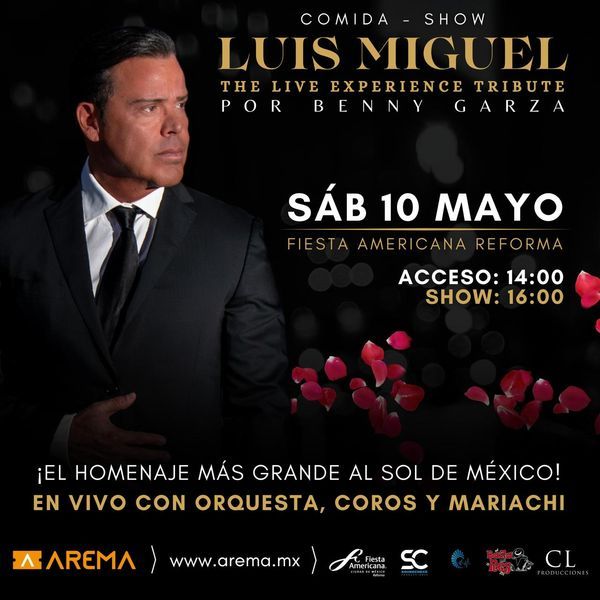 Vive la magia del Sol de México con Benny Garza, el intérprete que rinde el homenaje más grande a Luis Miguel, acompañado de una orquesta, mariachi y coro en vivo. Una noche llena de romance, nostalgia y elegancia en la que cada detalle ha sido pensado para hacer de esta celebración algo especial.