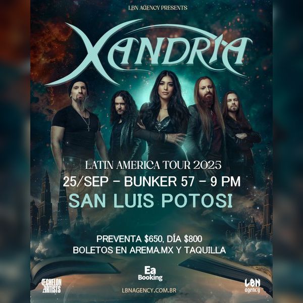 La banda icono del metal sinfonico aleman, Xandria, sorprendio con su mas potente material el año pasado, The Wonders still awaiting con la incorporacion de la fantastica Ambre Vourvahis cuyos rangos y alcance son una agradable sorpresa, salen de gira mundial este 2025 en promocion de su mas nuevo material Universal Tales. La banda establecida como tal en 1999 baja la direccion de Marco Heubaum proyecta una intensidad que no te puedes perder.