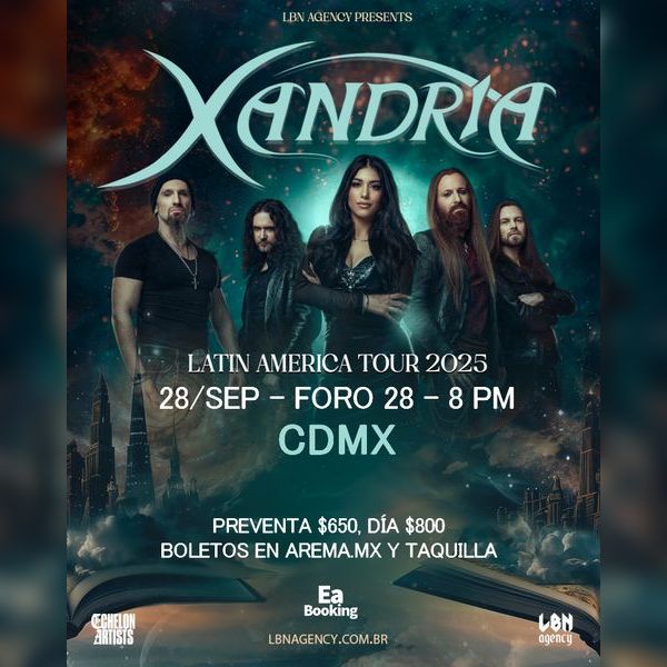La banda icono del metal sinfonico aleman, Xandria, sorprendio con su mas potente material el año pasado, The Wonders still awaiting con la incorporacion de la fantastica Ambre Vourvahis cuyos rangos y alcance son una agradable sorpresa, salen de gira mundial este 2025 en promocion de su mas nuevo material Universal Tales. La banda establecida como tal en 1999 baja la direccion de Marco Heubaum proyecta una intensidad que no te puedes perder.