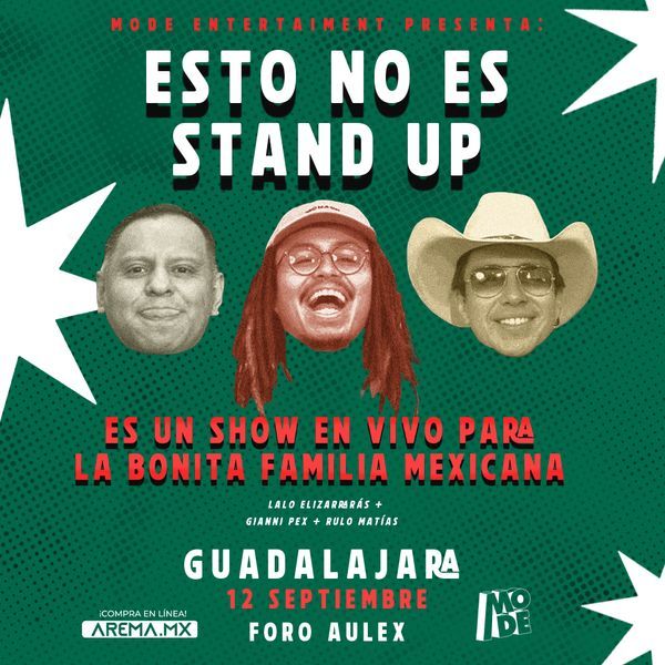 Gianni Pex, Lalo Elizarrarás y Rulo Matías presentan el Show En Vivo Para La Bonita Familia Mexicana, un espectáculo de comedia que NO ES STAND UP, donde esta gran tercia cómica hacen un espectáculo único lleno de risas en donde todos los presentes forman parte del show. Disfruta de esta noche de comedia por primera vez en Foro Aulex GUADALAJARA