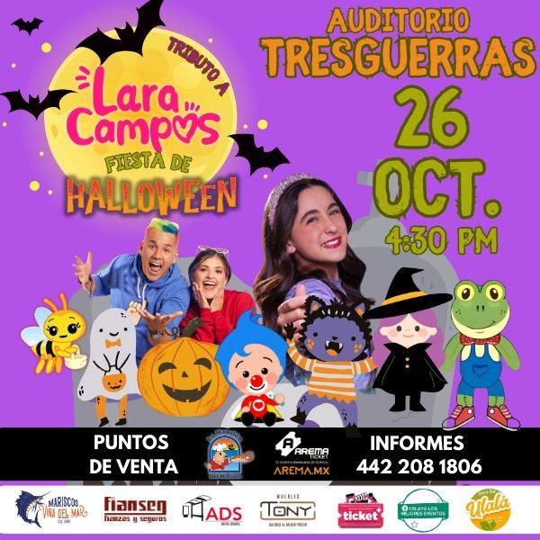 Tributo musical a Lara Campos y sus amigos, celebrando las fiestas de Halloween en el Auditorio Tresguerras.