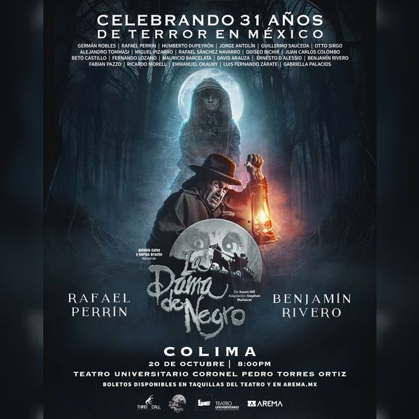 Adéntrate en este clásico del terror británico de Susan Hill donde el público presente voluntariamente o no, forma parte esencial de esta puesta en escena y es transportado a la primera década del año 1900 donde acontecieron los terribles eventos que desató el oscuro espíritu de una mujer sedienta de venganza donde cobró la vida de cientos de niños en un pequeño pueblo inglés y marcó las vidas de decenas de familias atormentadas por la fuerza de esta mujer que no piensa detenerse jamás. Han pasado treinta años y en este tiempo ella sólo se ha hecho más fuerte. Con el maestro del terror Rafael Perrín y Benjamín Rivero.”