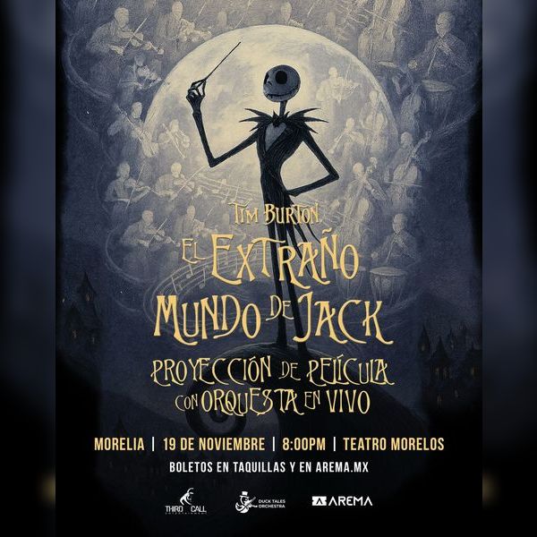 Sinopsis o información del evento: El clásico atemporal de Tim Burton, El Extraño Mundo de Jack, se transforma en un espectáculo sinfónico que hará vibrar cada rincón del Teatro Morelos de Morelia.