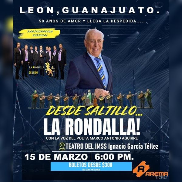 Sinopsis o información del evento: Desde Saltillo...La Rondalla! La gira del Adiós...! ABRIMOS NUEVA FECHA!