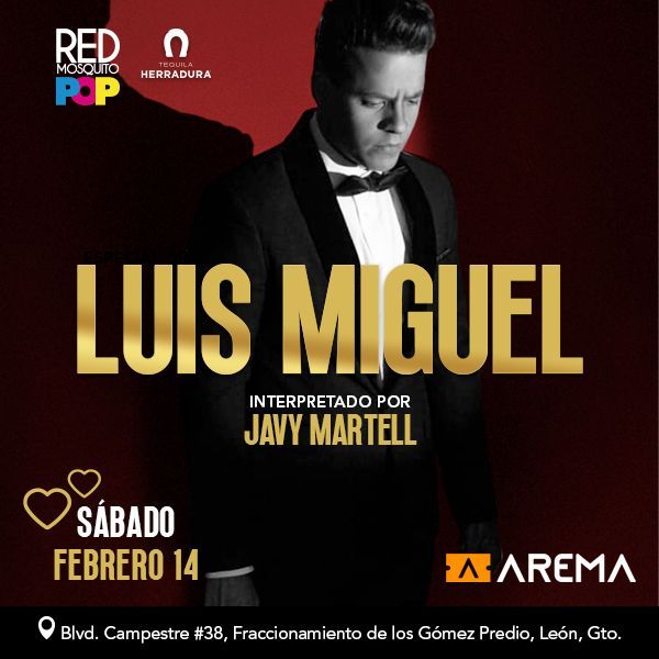 Llega a nuestro escenario Javi Martel con los mejores éxitos del sol de México, Luis Miguel para envolvernos en una atmósfera de romanticismo este 14 de febrero.