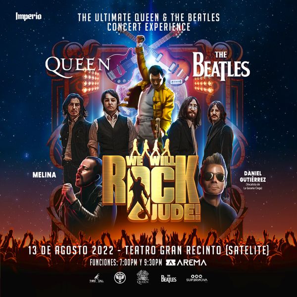 Un Espectáculo Único que conjunta un Concierto en Vivo con un Show Multimedia simultáneamente que te llevará en un Viaje Musical a través de los grandes Éxitos de dos de las más icónicas Bandas del Rock Mundial: Queen y The Beatles.