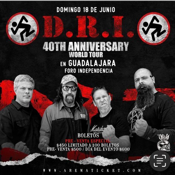 Llega la legendaria Banda de crossover - Thrash D.R.I. Llega festejando su tour del 40 aniversario.