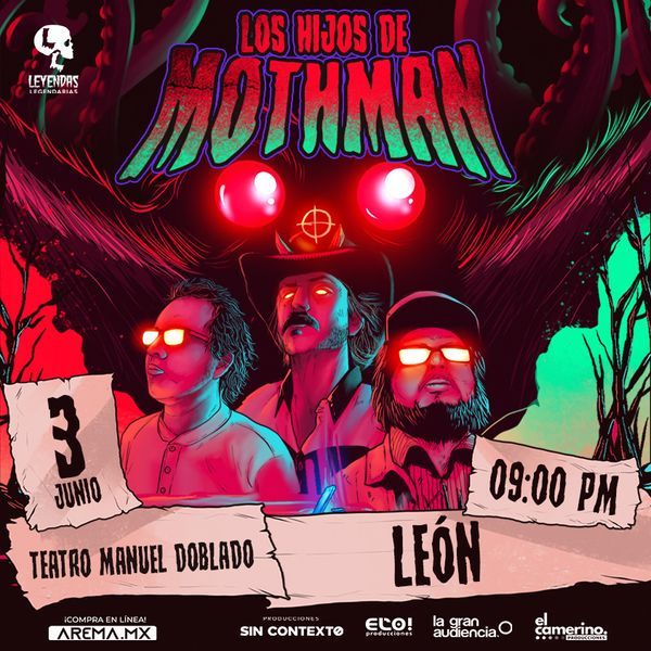 ¡Los Hijos de Mothman llegan a León! Un show en vivo protagonizado por los anfitriones de Leyendas Legendarias, en donde combinarán, comedia, historias macabrosas y tecnología desclasificada del área 51 para traer una experiencia única.
