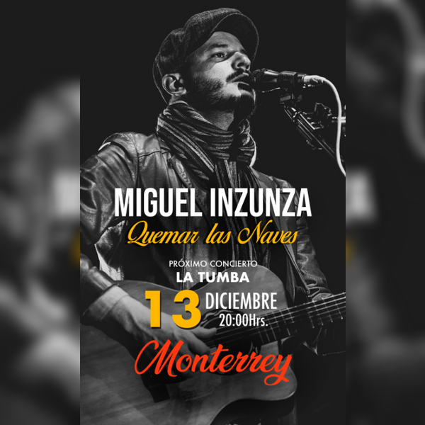 Sinopsis o información del evento: El cantautor y poeta Miguel Inzunza regresa luego de larga espera, para darnos un íntimo acústico, el tour “Quemar las Naves” es preámbulo de una producción que pronto verá la luz.