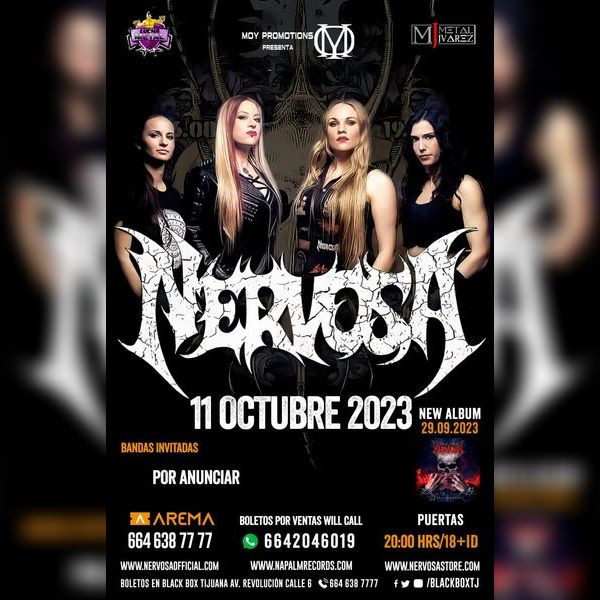 NERVOSA EN TIJUANA / MOY Promotions /Lucha Metal / Metal Juárez MIERCOLES 11 DE OCTUBRE DEL 2023