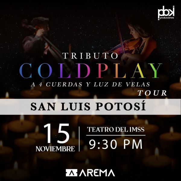 Evento único, en el cuál por medio de la luz de las velas y el sonido vibrante de 4 cuerdas, Te llevarán a un viaje relajante, emocionante y fascinante por los mejores éxitos de la banda Coldplay.