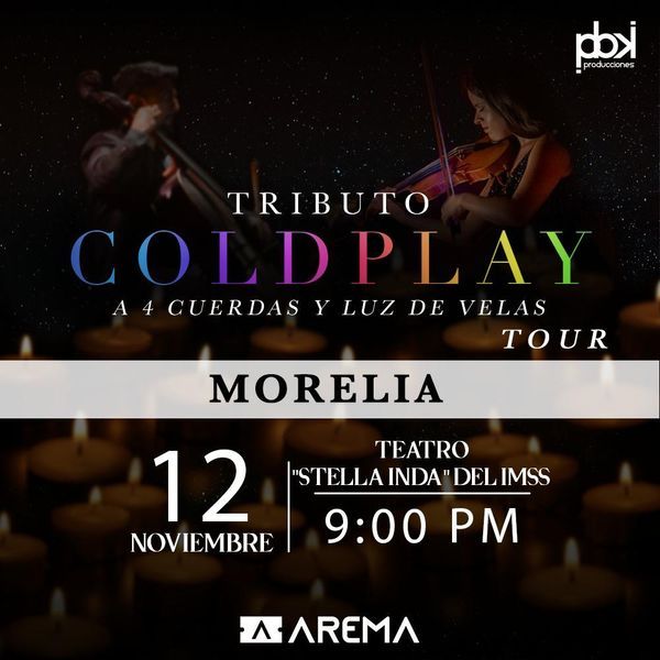 Evento único, en el cuál por medio de la luz de las velas y el sonido vibrante de 4 cuerdas, Te llevarán a un viaje relajante, emocionante y fascinante por los mejores éxitos de la banda Coldplay.