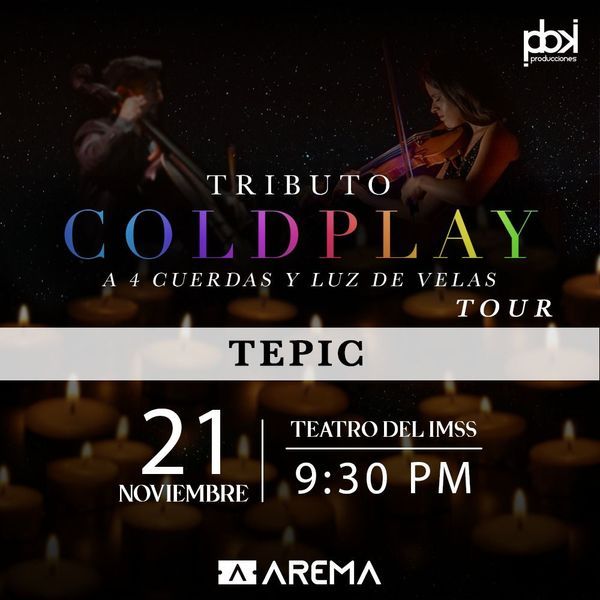 Evento único, en el cuál por medio de la luz de las velas y el sonido vibrante de 4 cuerdas, Te llevarán a un viaje relajante, emocionante y fascinante por los mejores éxitos de la banda Coldplay.