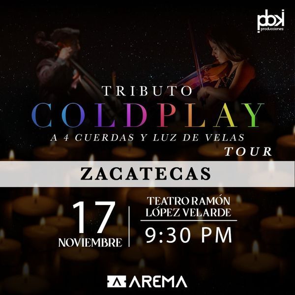 Evento único, en el cuál por medio de la luz de las velas y el sonido vibrante de 4 cuerdas, Te llevarán a un viaje relajante, emocionante y fascinante por los mejores éxitos de la banda Coldplay.