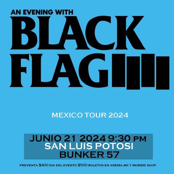 Black Flag, la banda pionera del hard core punk y creadores de post hard core, con Greg Ginn en la guitarra y la poderosa voz de Mike V regresa a México en Junio del 2024 para una gira de 6 eventos que los fans del hard rock y punk no se pueden perder. Sus rebeldes himnos anti-autoridad y el sonido crudo de su música complementado con pesados solos de guitarra muy bien estructurados hacen de una presentación de Black Flag una experiencia de las que se quedan en la mente de los fans.