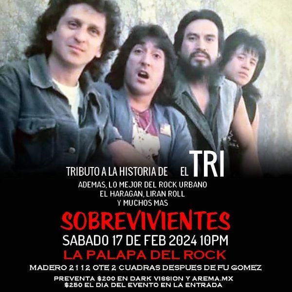 Tributo por Sobrevivientes en La Palapa del Rock, un homenaje a la historia del movimiento de rock urbano en Mexico, en vivo rolas de El Haragan, Liran Roll y más, pero sobre todo de Three Souls in My Mind y de Alex Lora y El Tri de México.
