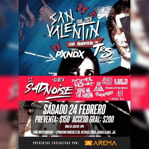 Concierto de 4hrs presentando en vivo el mejor tributo a PXNDX de México por TRS CALIFORNIA y lo mejor de la música emo en inglés por SAD NOISE (Dj Set)