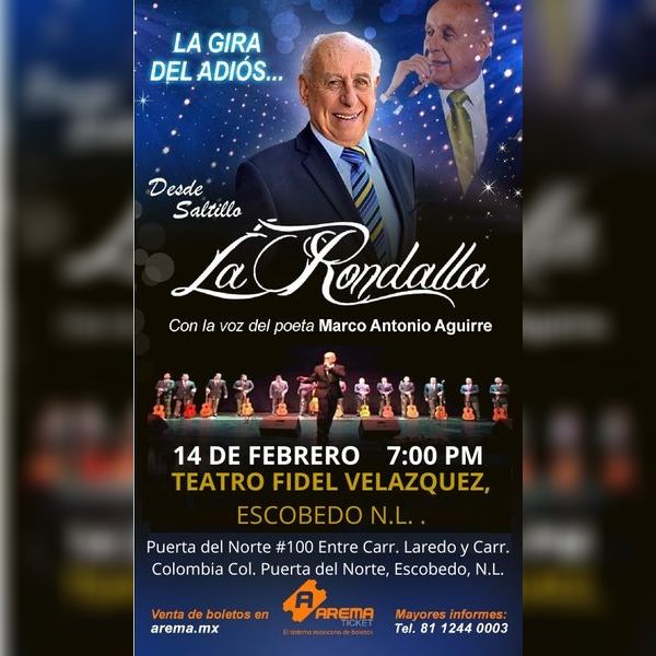 En el día del amor ...Lo pediste y regresa ! Desde Saltillo La Rondalla! UNICA FUNCION en la gira del adios,revive los éxitos que serán inolvidables