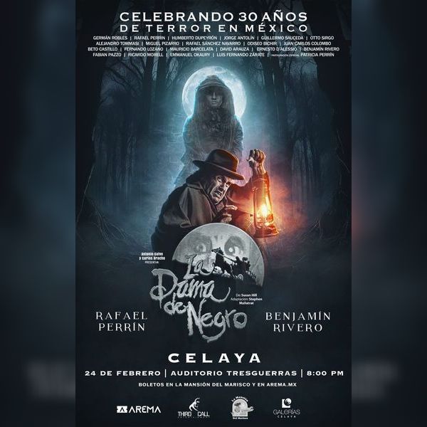 Adéntrate en este clásico del terror británico de Susan Hill donde el público presente voluntariamente o no, forma parte esencial de la puesta en escena y es transportado a la primera década del año 1900 donde acontecieron los terribles eventos que desató el oscuro espíritu de una mujer sedienta de venganza donde cobró la vida de cientos de niños en un pequeño pueblo inglés y marcó las vidas de decenas de familias atormentadas por la fuerza de esta mujer que no piensa detenerse. Han pasado treinta años y en este tiempo ella sólo se ha hecho más fuerte. Con el maestro del terror Rafael Perrín y Benjamín Rivero.