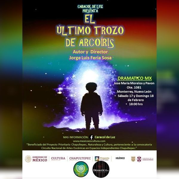 EL ULTIMO TROZO DE ARCOIRIS, es una historia sobre la búsqueda de la esperanza perdida, el rescate de uno mismo y la importancia de mantener vivo el amor de los seres que tocaron nuestras vidas y hoy ya no están. Una historia divertida y con un mensaje de amor incondicional