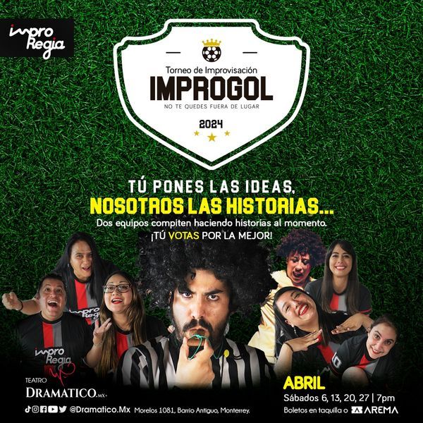 ImproGol es un espectáculo teatral, único en Monterrey que no te puedes perder. Cada historia es completamente improvisada, con diferentes estilos o retos y el público decidirá al ganador.