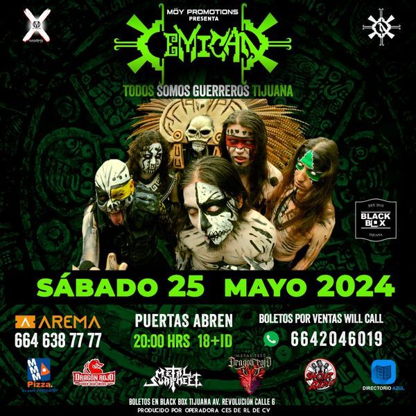 CEMICAN** **TODOS SOMOS GUERREROS TIJUANA por MOY PROMOTIONS / METAL SWAP MEET* CEMICAN es una de las bandas de heavy metal /Folk Metal , más grande de MÉXICO originaria de la Guadalajara Jal. en 2009, que resalta la gloria y grandeza de un México ancestral y antiguo.