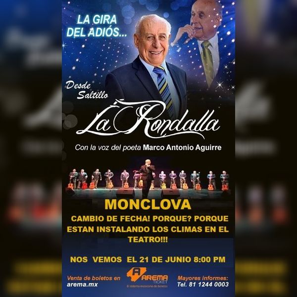 **IMPORTANTE.- Los boletos adquiridos para la presentacion del dia 12 de Mayo seran validos para la nueva fecha 21 de Junio a las 8:00pm y no es necesario realizar ningun cambio de boletos**