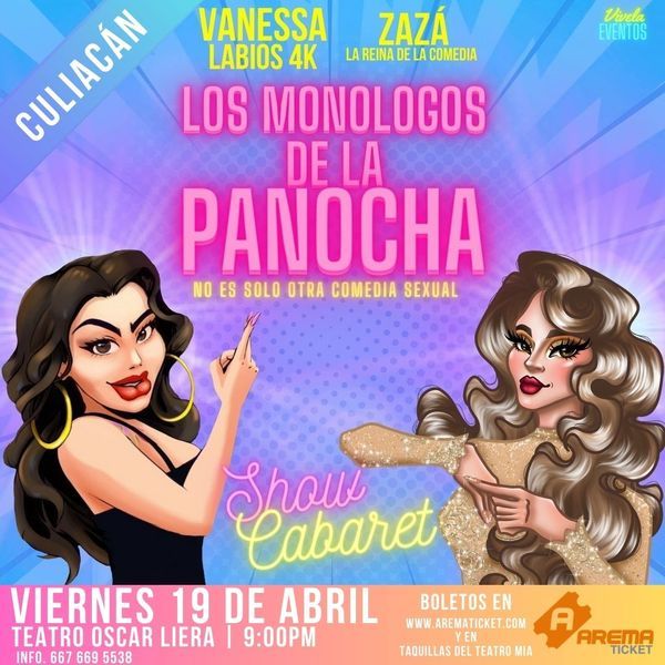 Vanessa Labios 4 k y Zaza La Reina De La Comedia, se unen en este show de comedia cabaret lleno de experiencias, música, risas y anécdotas con mucha picardía que te harán indagar en tus más profundos deseos y dejar de lado el pudor y venirte.... a reír de placer.