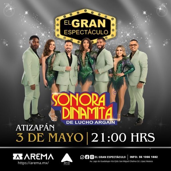 Hablar de la Sonora Dinamita de Lucho Argaín es mencionar mas de 40 discos grabados y 8 discos de oro, platino y el alto indice de ventas por colaboraciones con: Mariana Seoane, Dr Shenka, Susana Zabaleta, Alexander Acha, Santa Fe Klan entre otros... asi como 2 llenos totales en el Auditorio Nacional y 60 años de trayectoria ahora llega a: El Gran Espectaculo!
