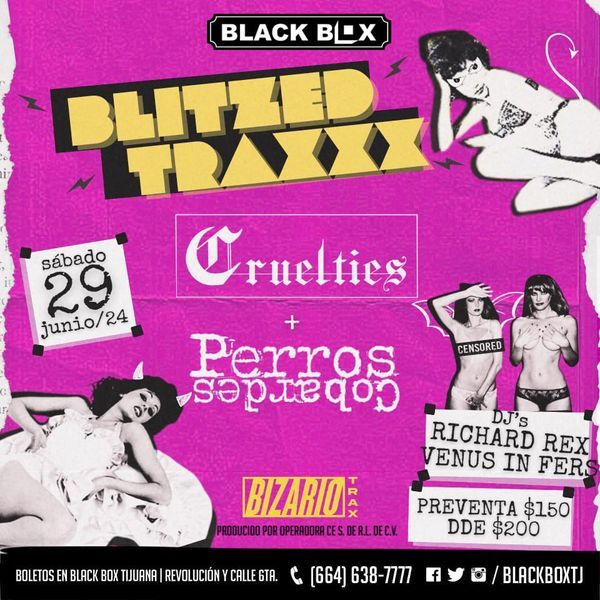 BLACK BOX PRESENTABlitzed Traxxx29 junio 2024Solo mayores 18+IDPrecios (Más cargo por servcio):Preventa general $150Día del evento $200