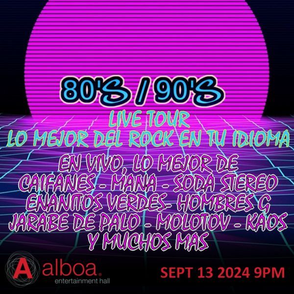 Serás transportada en el tiempo a la escuela, revive grandes éxitos del rock en español en vivo con los top hits de tus bandas favoritas como Caifanes, Soda Stereo, Mana, Molotov, Hombre G, Enanitos Verdes y muchos mas este viernes 13 de Septiembre en Alboa Fashion Drive, uno de los lugares mas exclusivos de la ciudad donde disfrutaras de un completísimo menú para todos los gustos, super cómodas instalaciones y el mejor equipo de audio e iluminación.