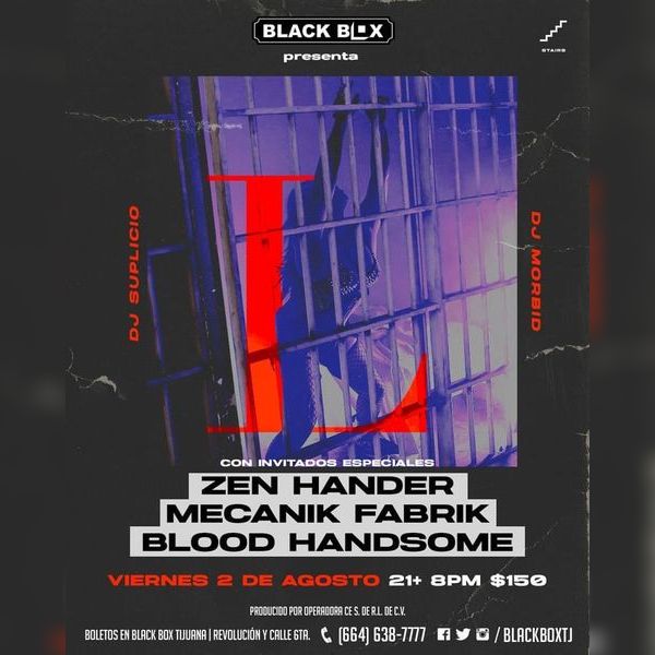 BLACK BOX PRESENTAL + Invitados Especiales (Zen Hander, Mecanik Fabrik, Blood Handsome)2 agosto 2024Solo mayores 18+IDPrecios (Más cargo por servicio):Entrada General $150 pesos Evento 3er piso
