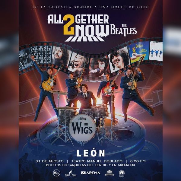 Prepárate para disfrutar como nunca de los grandes éxitos que dieron vida vida a las películas de la banda más grande de todos los tiempos: THE BEATLES! Como nunca se ha presentado antes, The Wigs trae a tu ciudad el tour All Together Now 2, un concierto en donde cantarás, bailarás y gozarás los temas más emblemáticas de las películas del Cuarteto de Liverpool como: A Hard Day's Night, Help!, Magical Mystery Tour, Yellow Submarine y Let it be en un ambiente multimedia que te sorprenderá acompañado de una gran producción. Tú ya nos nos conoces! Ven y vive este concierto a la Beatlemanía donde juntos hacemos esta gran fiesta donde nosotros ponemos la música y el ambiente y el público pone los gritos y el baile!
