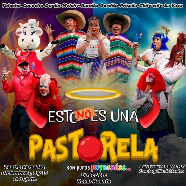 La tripleta de payasos mas famosa de la radio, se junta con los payasos mas Virales de youtube y tiktok, acompaña a Tolocho, Duglin y Tito, Cococho, ramito y Gordito chily wily, melchy, Priscila y la vaca, en esta búsqueda de la estrella de Belén… en su intento de Pastorela que no son mas que puras Payasadas. Con este gran elenco no pararás de reír ni de divertirte este próximo diciembre por primera vez teatro Versalles con esta divertidísima obra 100% familiar para los niños y los no tan niños.