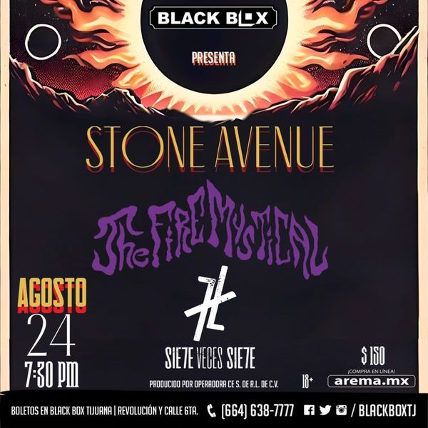 BLACK BOX PRESENTAStone Avenue24 agosto 2024Solo mayores 18+IDPrecios (Más cargo por servicio):General $150 pesosEvento 3er piso