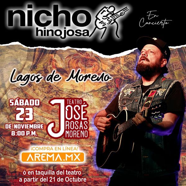 Regresa a Lagos de Moreno el reconocido cantante Nicho Hinojosa, esta vez en el teatro José Rosas Moreno, en donde interpetrará todos sus éxitos y hará que su público disfrute de una velada bohemia inolvidable.