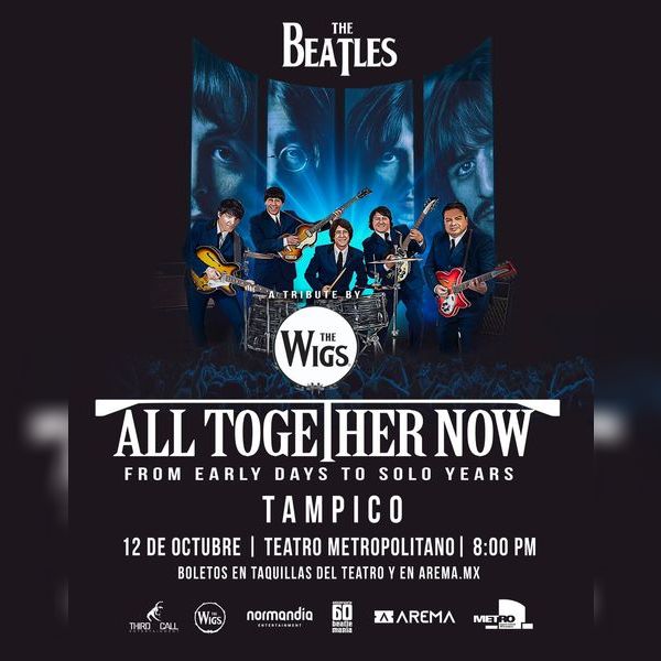 La Gira con la fiesta más grande a la Beatlemanía de todo México llega por primer vez a Tampico con All Together Now, el primer espectáculo en vivo en el que por primera vez y en una sola noche revivirás los éxitos más grandes de la legendaria banda The Beatles desde sus primeros años hasta las canciones que consagraron las carreras como solistas de John, Paul, George y Ringo, interpretados por la Banda reconocida como mejor Tributo a The Beatles en México: The Wigs! Celebrando 20 años de carrera internacional, representantes de nuestro país en Liverpool, Inglaterra en 2014 y 2020. Ven a Cantar y bailar al ritmo de estas melodías atemporales y experimenta la emoción de la música en vivo mientras celebramos el legado musical de The Beatles. ¡Compra tus entradas hoy y únete a nosotros para una noche inolvidable de música!