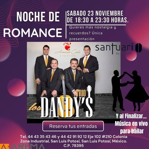 Una noche llena de romance con aquella música que siempre está presente en los corazones y al finalizar, una bailada con música en vivo!