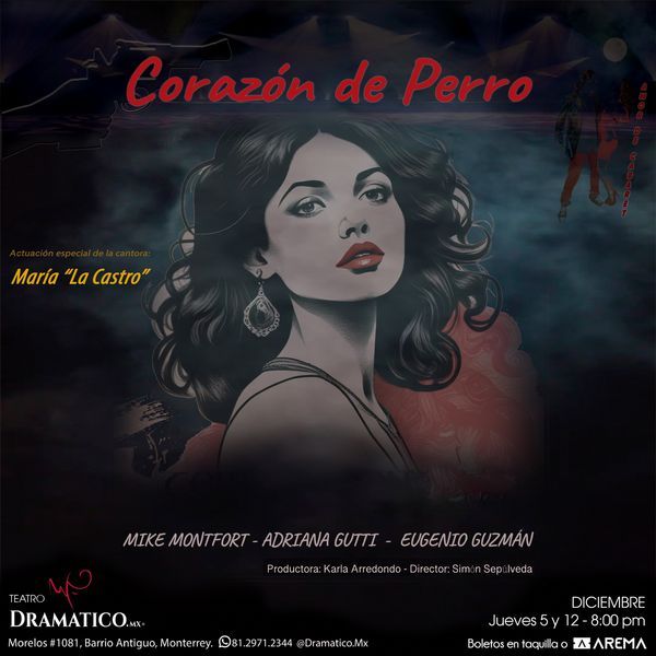 Corazón de Perro, es una obra inquietante y apasionada, que te hará vibrar desde tu butaca y te llevará a una experiencia tan real que serás parte de un mundo de pasiones, cantos, bailes, amor e ilusión. El Corazón de Perro, es un beso que te arrancará los labios.