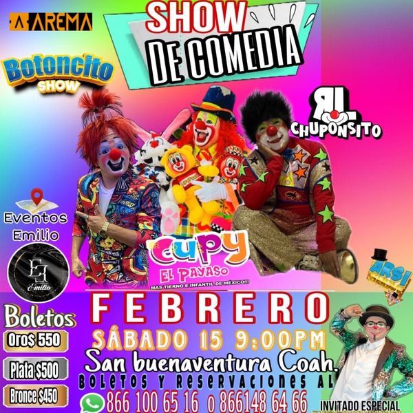 ¡Ven a disfrutar del mejor humor y diversión para toda la familia! Y No te pierdas este show que promete sacarte más de una sonrisa.