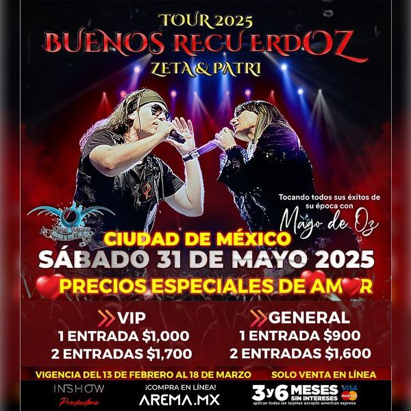 Zeta& Patricia Tapia llegan con su nueva gira: BUENOS RECUERDOZ TOUR 2025\\\\\\" donde nos harán un recorrido musical de su época con su antigua banda \\\\\\\"MAGO DE OZ. Con un set list totalmente nuevo, en donde los recuerdOZ llegarán desde el disco de hechizo, hasta bandera negra.