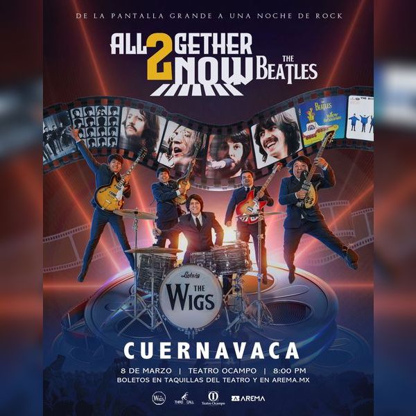“The Wigs está de regreso en Cuernavaca! Prepárate para disfrutar como nunca de los grandes éxitos que dieron vida vida a las películas de la banda más grande de todos los tiempos: THE BEATLES! Como nunca se ha presentado antes, The Wigs trae a tu ciudad el tour All Together Now 2, un concierto en donde cantarás, bailarás y gozarás los temas más emblemáticas de las películas del Cuarteto de Liverpool como: “A Hard Day's Night", \"Help!\", \"Magical Mystery Tour\", \"Yellow Submarine\" y \"Let it be\" en un ambiente multimedia que te sorprenderá acompañado de una gran producción. Tú ya nos nos conoces! Ven y vive este concierto a la Beatlemanía donde juntos hacemos esta gran fiesta donde nosotros ponemos la música y el ambiente y el público pone los gritos y el baile!”