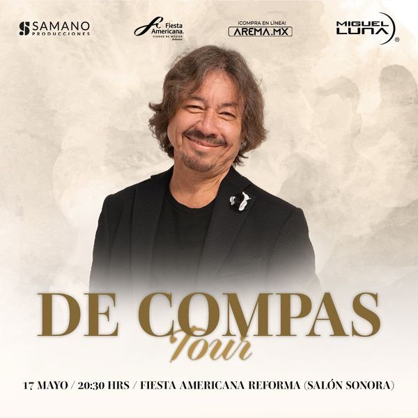 En el marco de su tour ''De Compas'', inspirado en su tema recientemente grabado por Carin León, Miguel Luna promete una velada inolvidable con su talento único y la magia de sus composiciones. ¡No te lo pierdas!