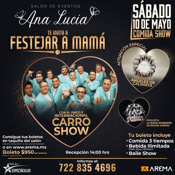 ¿Dónde comprar boletos? Taquilla del Salón Ana Lucia ó en línea a través de www.arema.mx