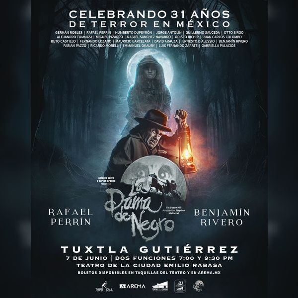 Adéntrate en este clásico del terror británico de Susan Hill donde el público presente voluntariamente o no, forma parte esencial de esta puesta en escena y es transportado a la primera década del año 1900 donde acontecieron los terribles eventos que desató el oscuro espíritu de una mujer sedienta de venganza donde cobró la vida de cientos de niños en un pequeño pueblo inglés y marcó las vidas de decenas de familias atormentadas por la fuerza de esta mujer que no piensa detenerse jamás. Han pasado treinta años y en este tiempo ella sólo se ha hecho más fuerte. Con el maestro del terror Rafael Perrín y Benjamín Rivero.”
