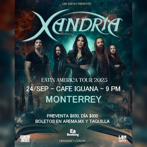 La banda icono del metal sinfonico aleman, Xandria, sorprendio con su mas potente material el año pasado, The Wonders still awaiting con la incorporacion de la fantastica Ambre Vourvahis cuyos rangos y alcance son una agradable sorpresa, salen de gira mundial este 2025 en promocion de su mas nuevo material Universal Tales. La banda establecida como tal en 1999 baja la direccion de Marco Heubaum proyecta una intensidad que no te puedes perder.